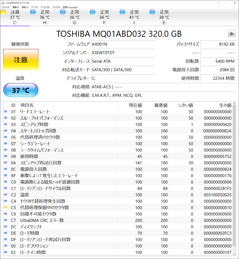 HDDがピンチ? 2022年9月7日 最終更新日時 : 2023年12月14日 管理人 何だか違和感があったので「CrystalDiskInfo」をインストールしてチェック。 不味いのか?これは不味いやつなのか? \ 最新情報をチェック / FacebookXBlueskyHatenaCopy