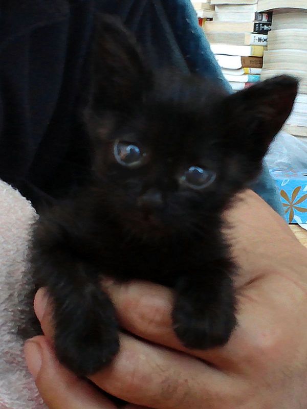 チビは台風の日に庭で鳴きながら転がっている所を発見、保護しました。